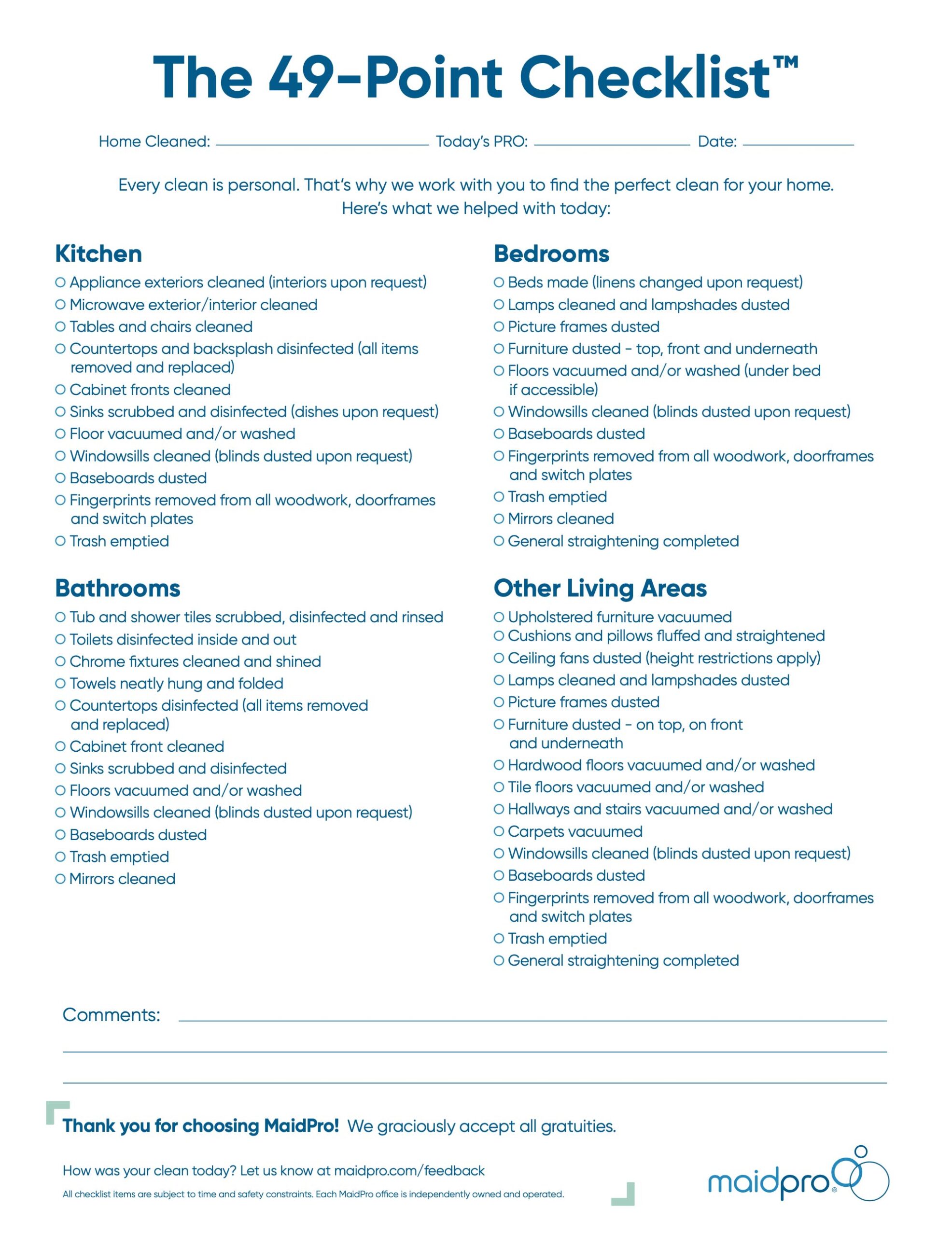 MaidPro 49-Point Checklists – Ensuring a Thorough and Consistent Clean