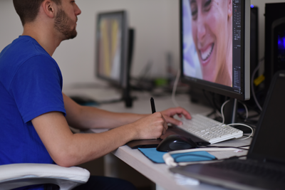 graphic artist at computer